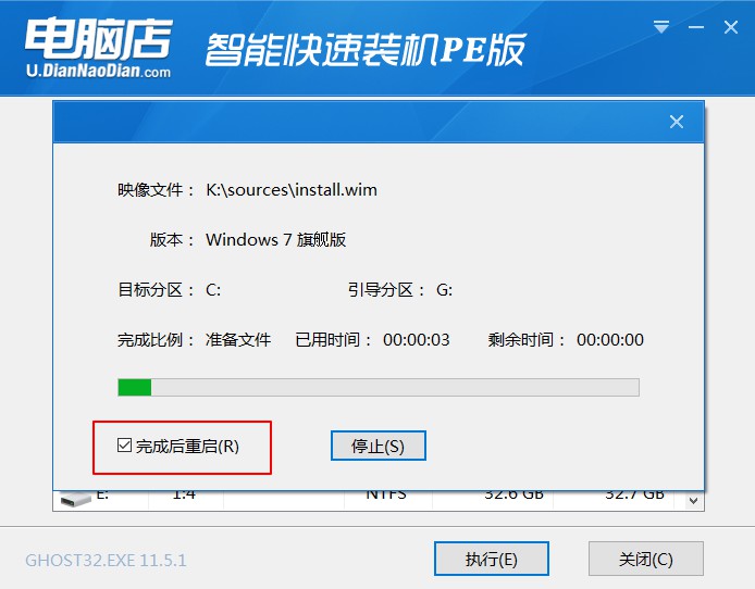 3、接下来等待安装,完成后重启电脑,拔出U盘启动盘即可进入系统。